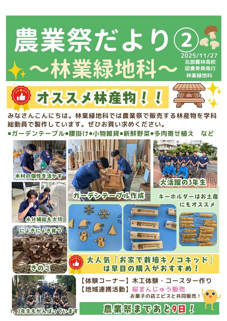 図書委員会より発行されている農業祭だよりをご覧ください。