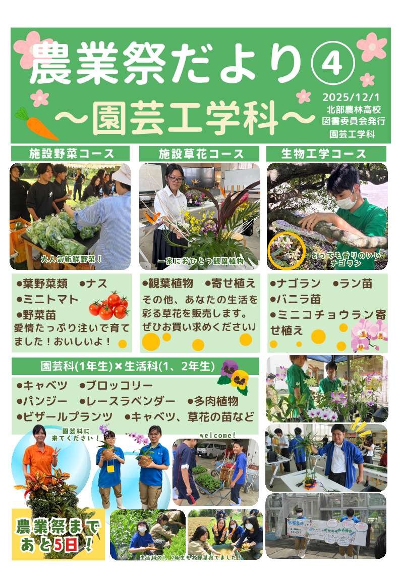 今回の農業祭だよりは「園芸工学科」「生活科学科」です。