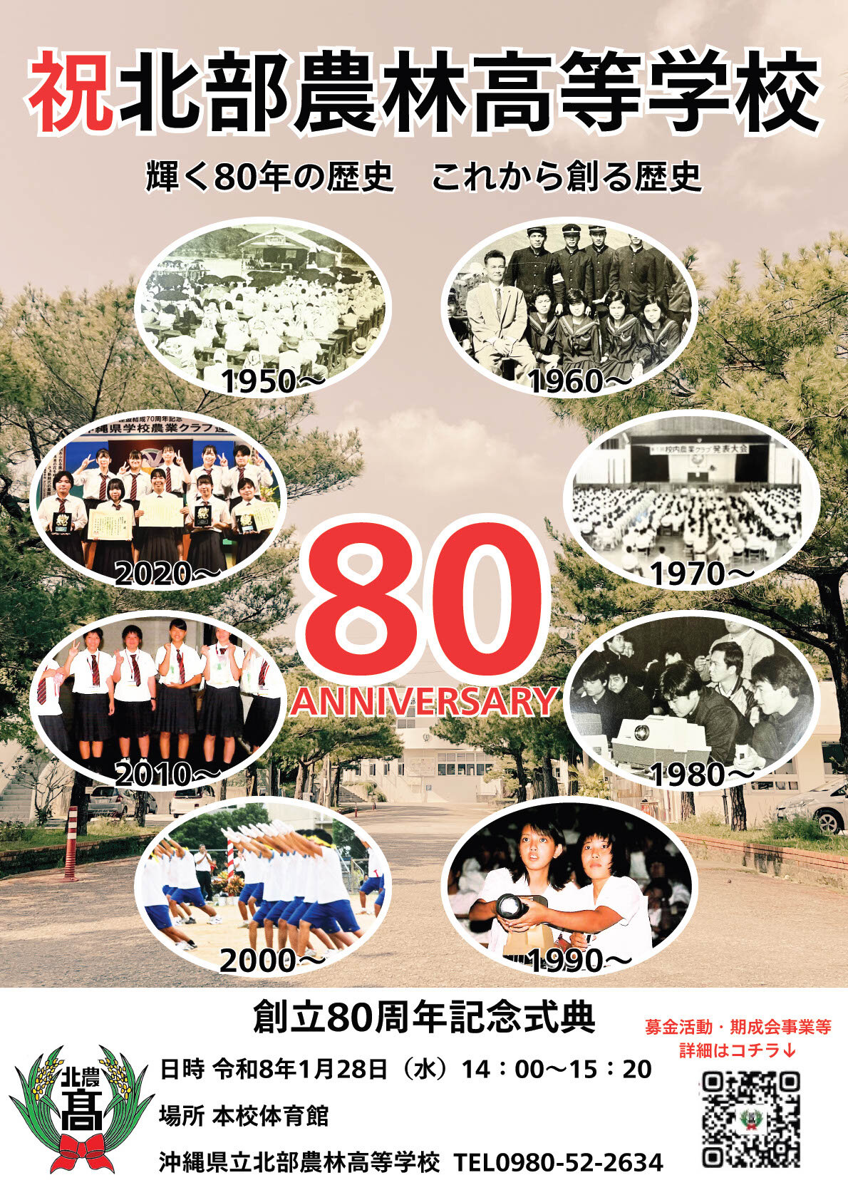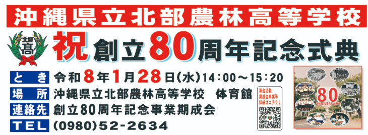 創立80周年の記念すべき節目にあたり、本校の更なる発展を期するため、「沖縄県立北部農林高等学校創立80周年記念事業期成会」を結成し、80周年記念事業を推進することにしました。